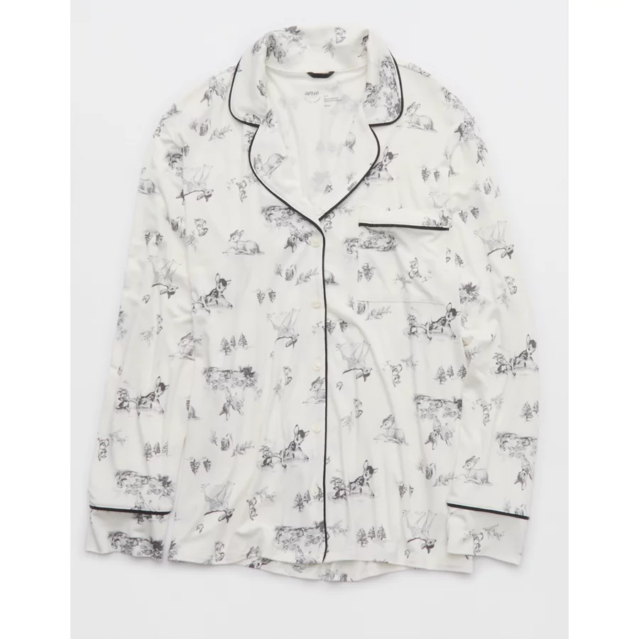 Aerie Bambi Real Soft® Piping Pajama Shirt – Smoked Gray