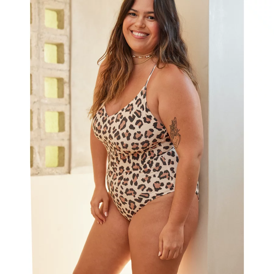 Aerie Buzzed Terry Leopard Strappy Back One Piece Swimsuit – Vintage Vanilla