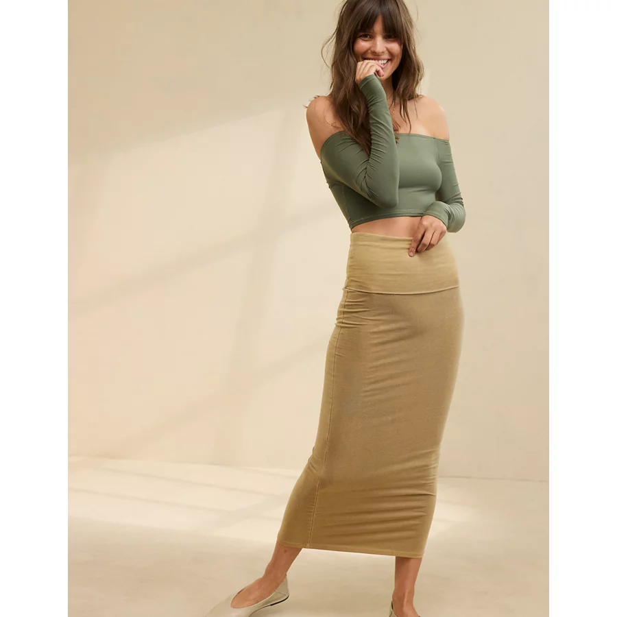 Aerie Chill Up Foldover Maxi Skirt – Soft Stone