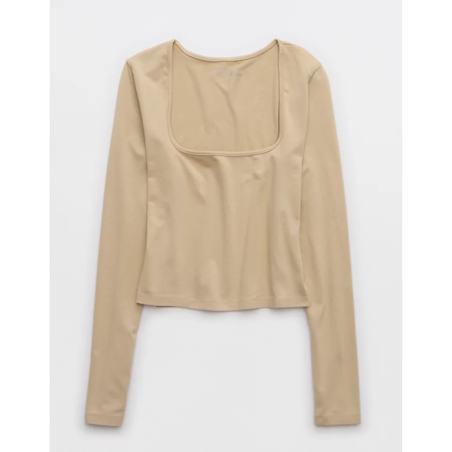 Aerie Chill Up Long Sleeve Cropped T-Shirt – Empire Cream