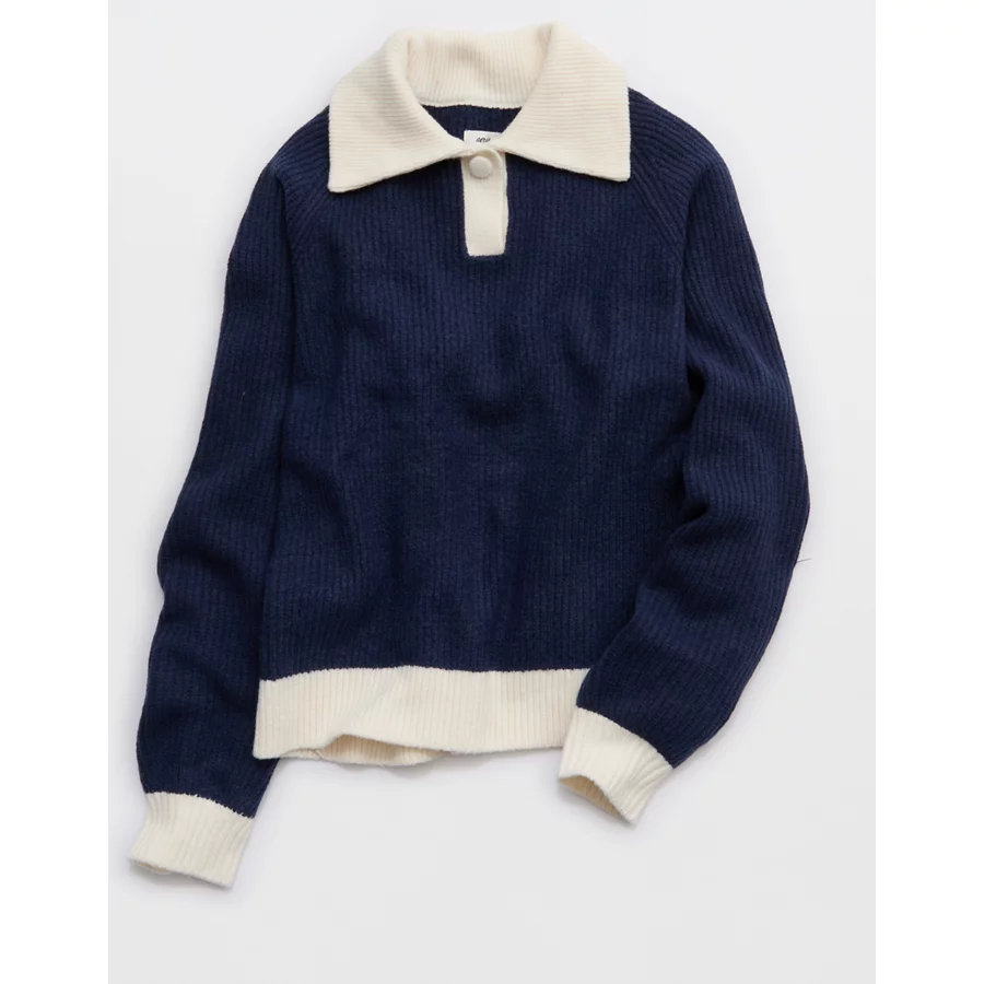 Aerie Classic Quarter Button Sweater - Deep Earth
