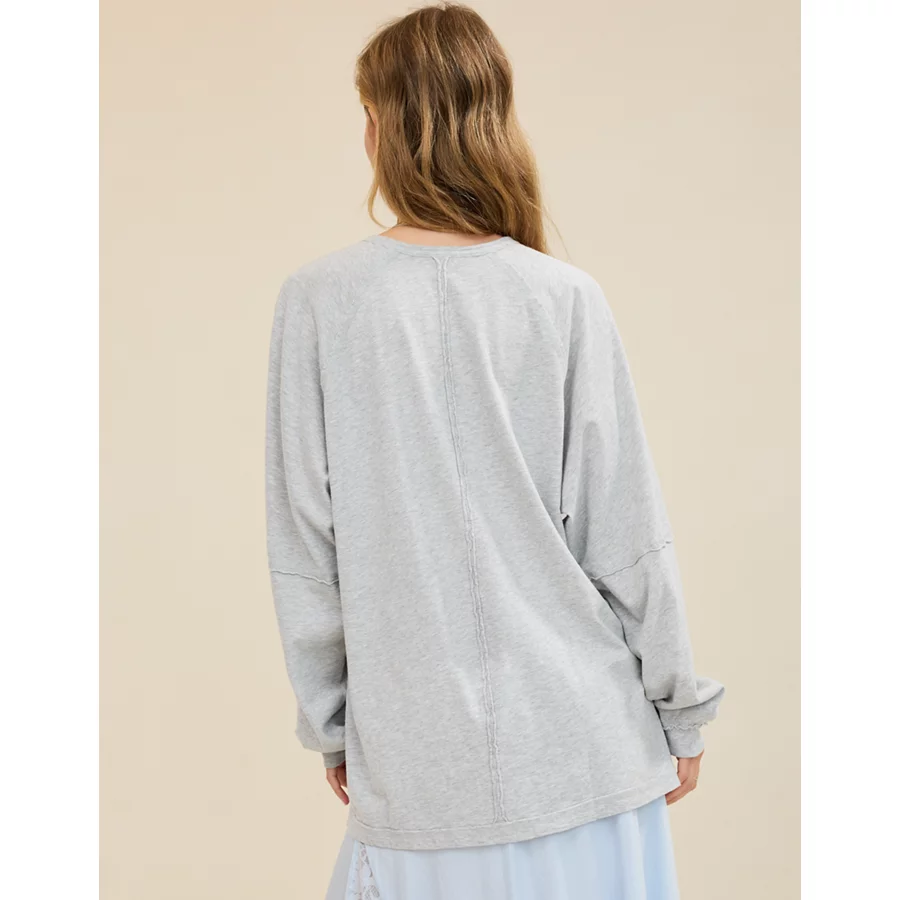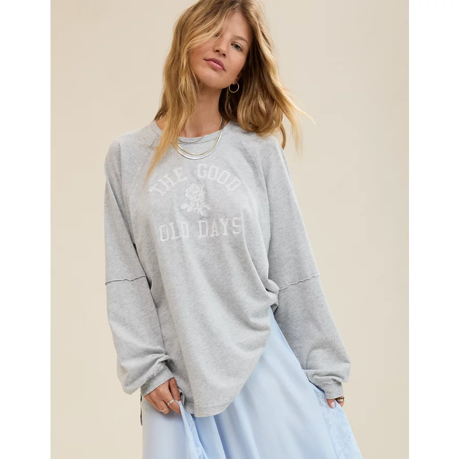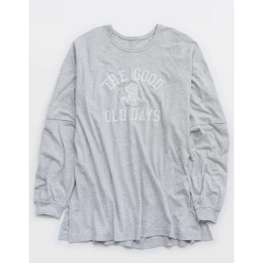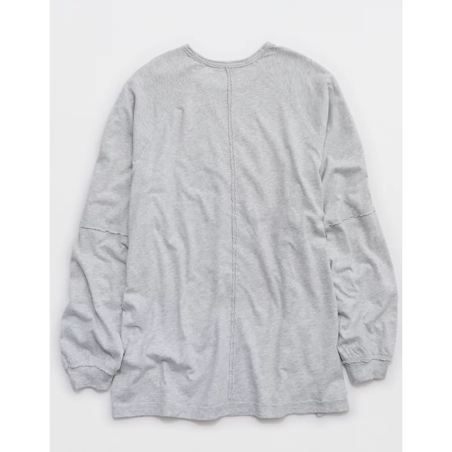 Aerie Cozy Long Sleeve Oversized Boyfriend T-Shirt – Medium Heather Gray