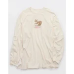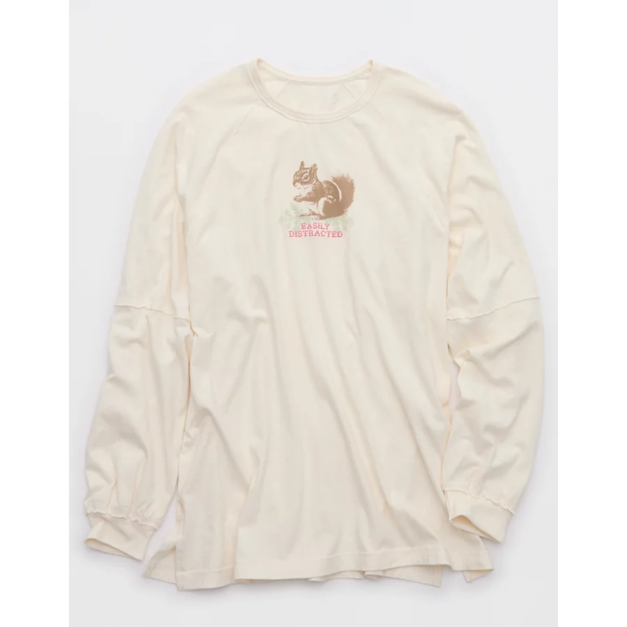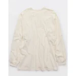 Aerie Cozy Long Sleeve Oversized Boyfriend T-Shirt – Natural