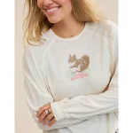 Aerie Cozy Long Sleeve Oversized Boyfriend T-Shirt - Frosty Cream