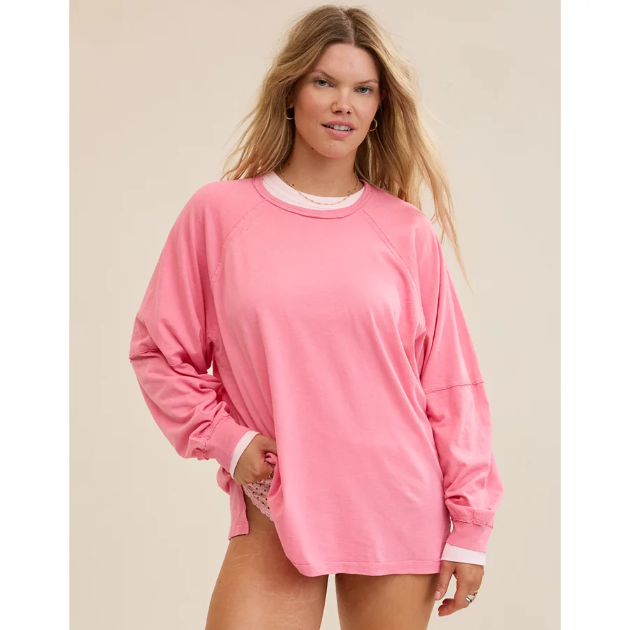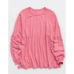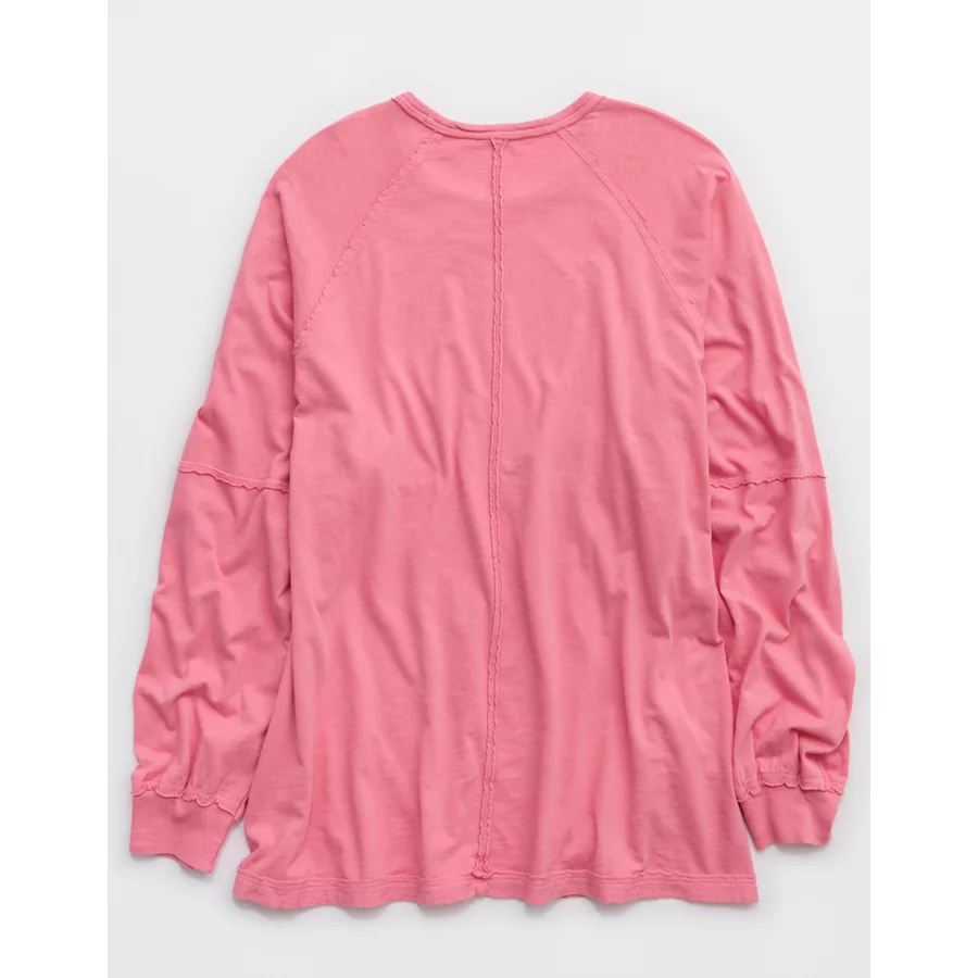 Aerie Cozy Long Sleeve Oversized Boyfriend T-Shirt – Playful Pink