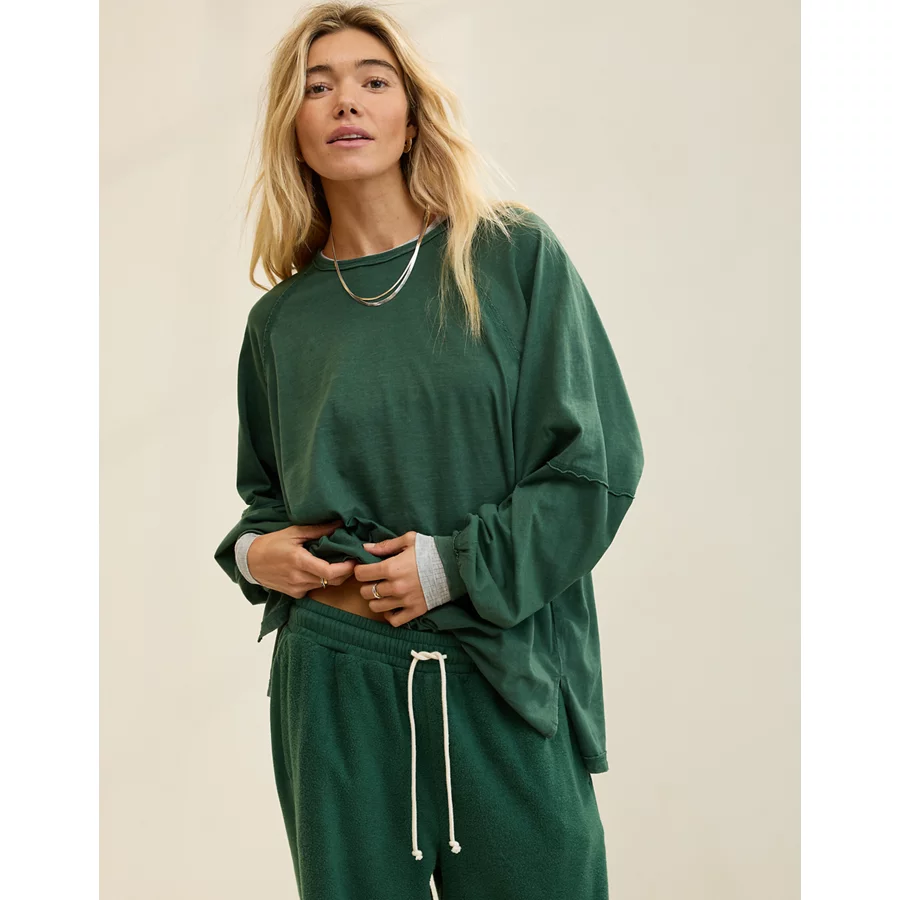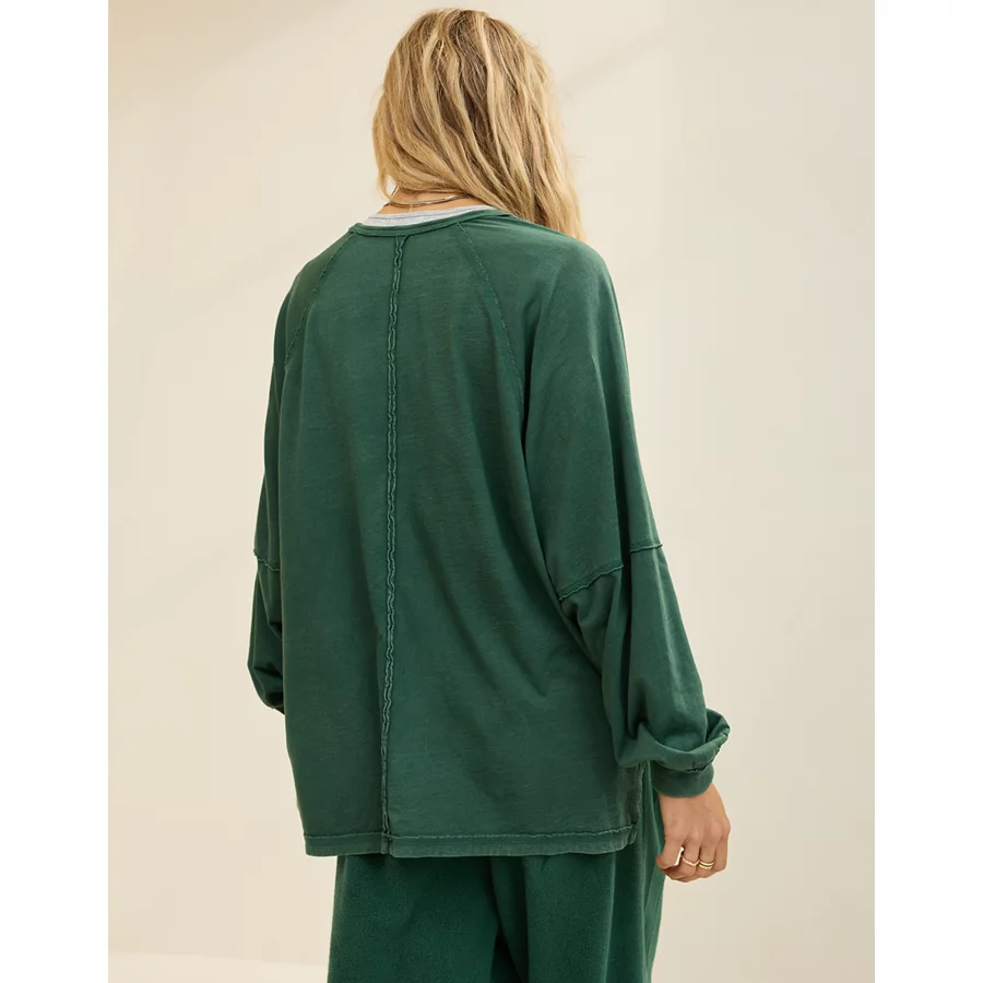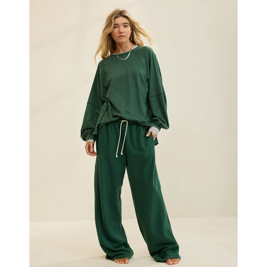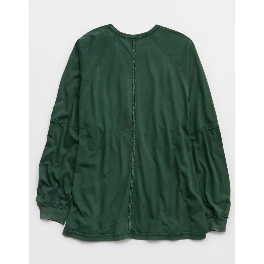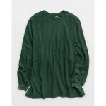 Aerie Cozy Long Sleeve Oversized Boyfriend T-Shirt – Rugged Green