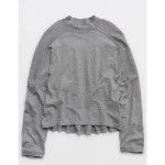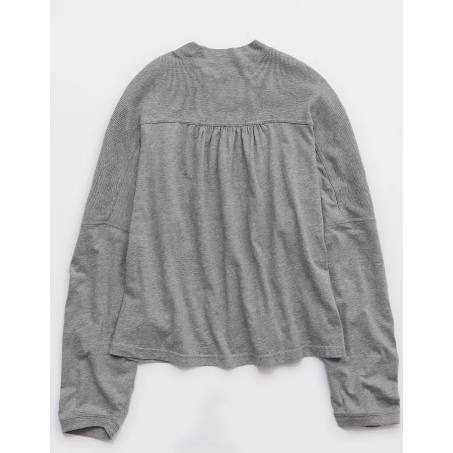 Aerie Cozy Long Sleeve Oversized Boyfriend T-Shirt - Medium Heather Gray