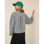 Real Good Everyday yarnRolled necklineRibbed trim on cuffs and hemPointelle deets and split cuffs on the sleevesStripedAccessibility deets: over-the-head access