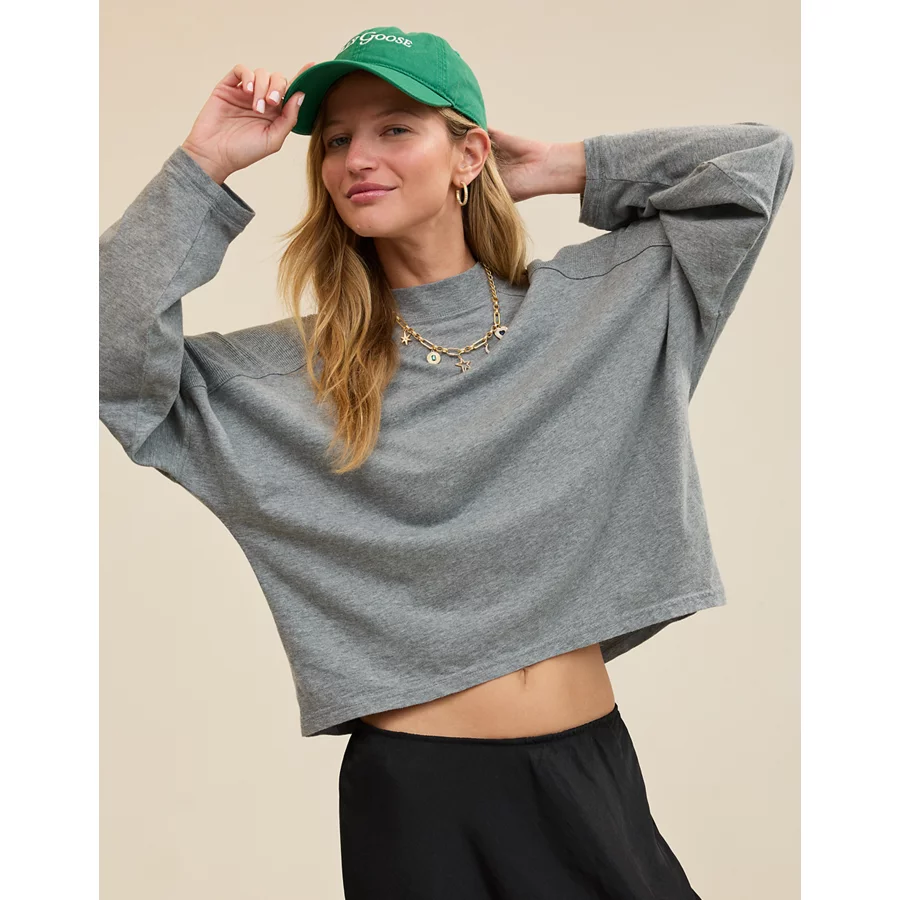 Aerie Cozy Mock-Neck T-Shirt – Dark Heather Gray