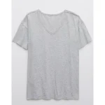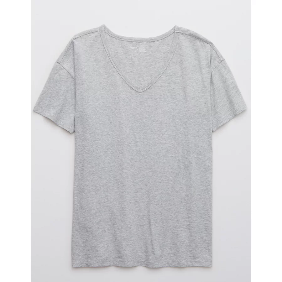 Aerie Distressed Basic V-Neck Boyfriend T-Shirt – Medium Heather Gray