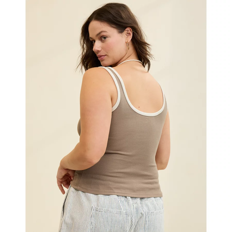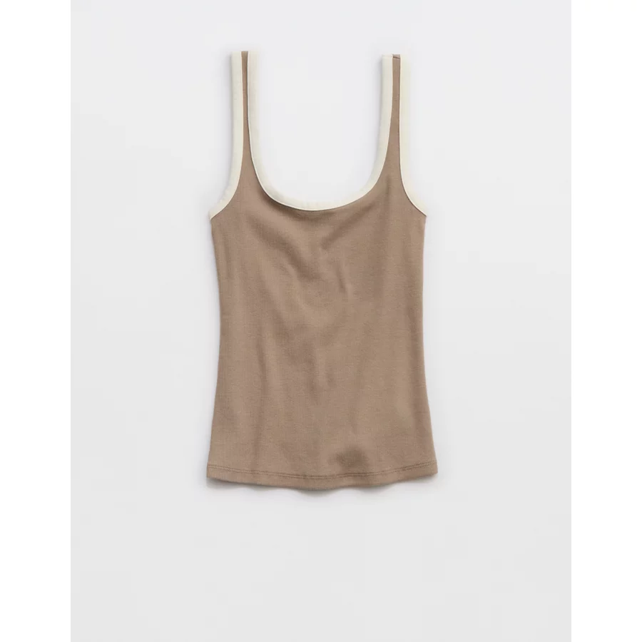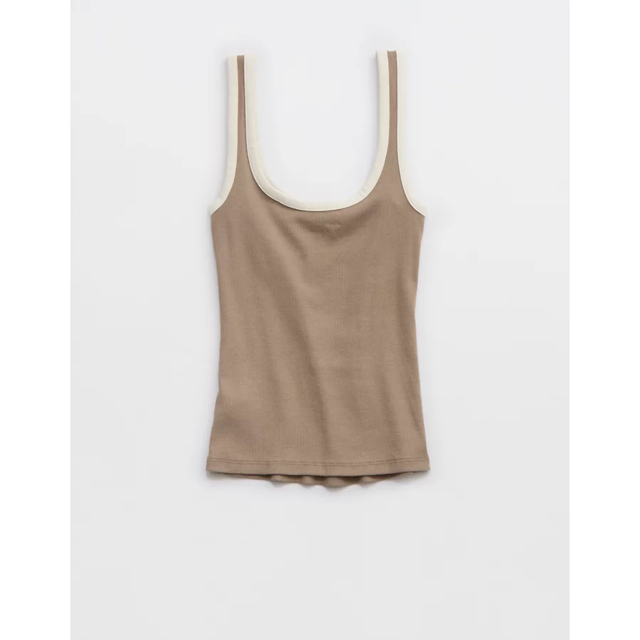Aerie Double Scoop Neck Tank Top – Beige