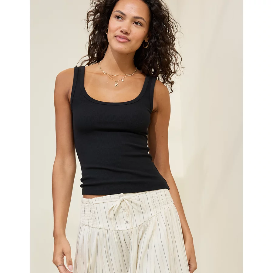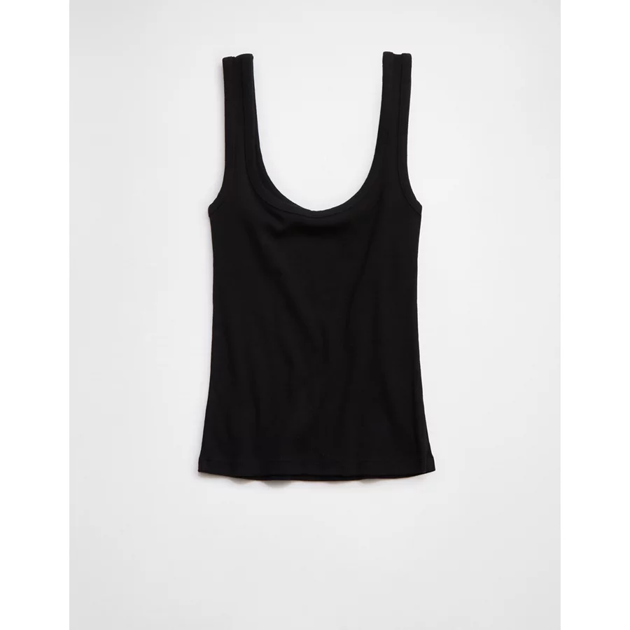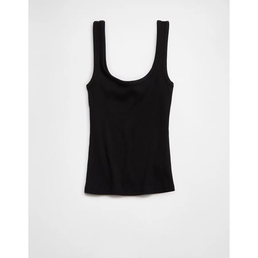 Aerie Double Scoop Neck Tank Top – True Black