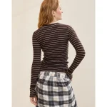 Real Good Everyday yarnRolled necklineRibbed trim on cuffs and hemPointelle deets and split cuffs on the sleevesStripedAccessibility deets: over-the-head access