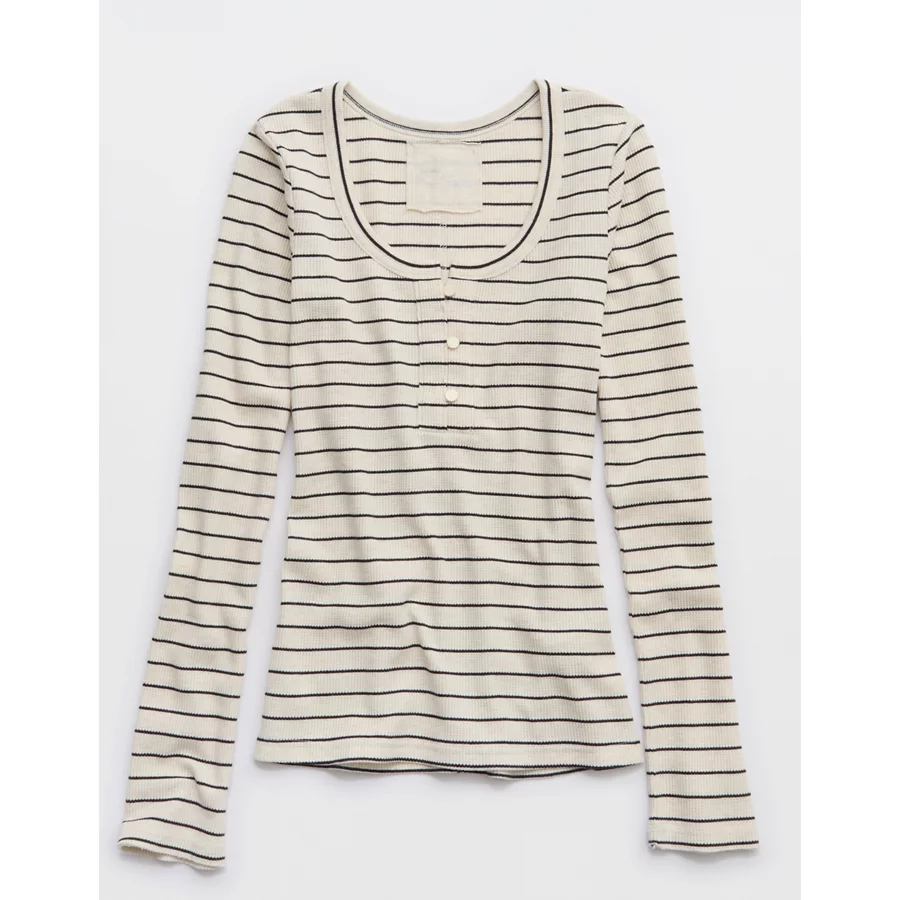 Aerie Essential Henley Layering T-Shirt – Heather Frost