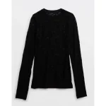 Real Good Everyday yarnRolled necklineRibbed trim on cuffs and hemPointelle deets and split cuffs on the sleevesThis style is heathered