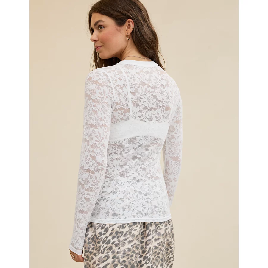 Aerie Essential Lace Layering T-Shirt – White