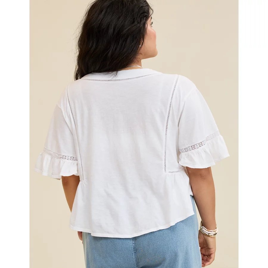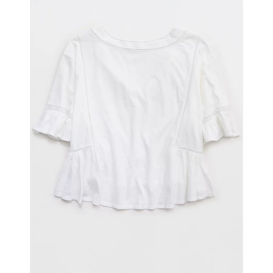 Aerie Flowy Cropped Notch Neck T-Shirt – White
