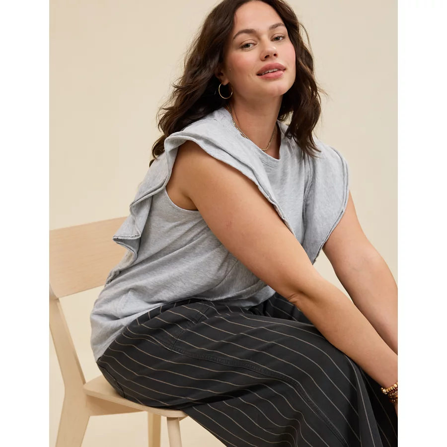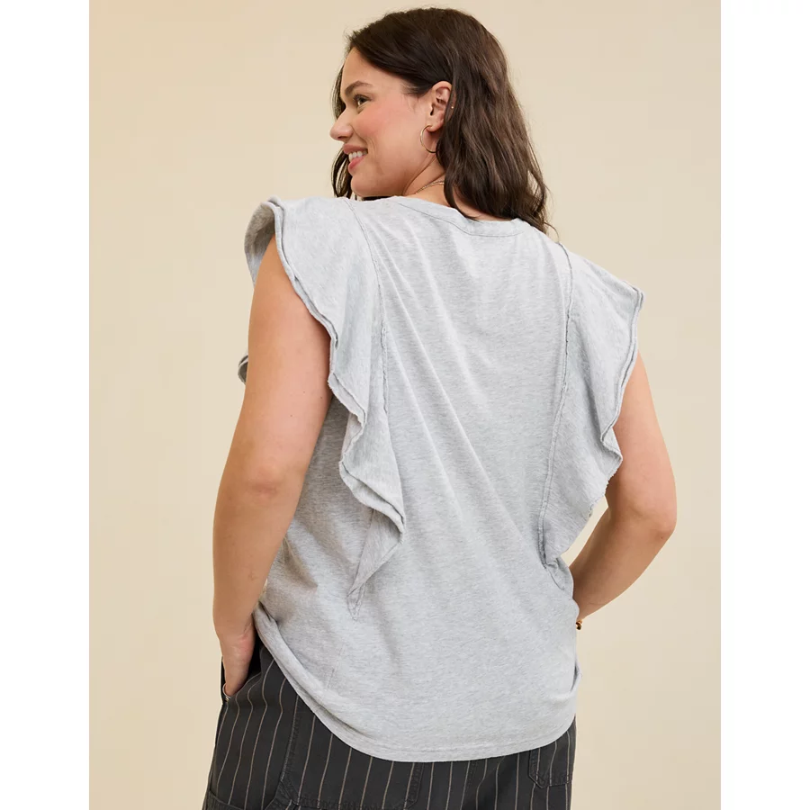 Aerie Flutter Sleeve T-Shirt – Medium Heather Gray