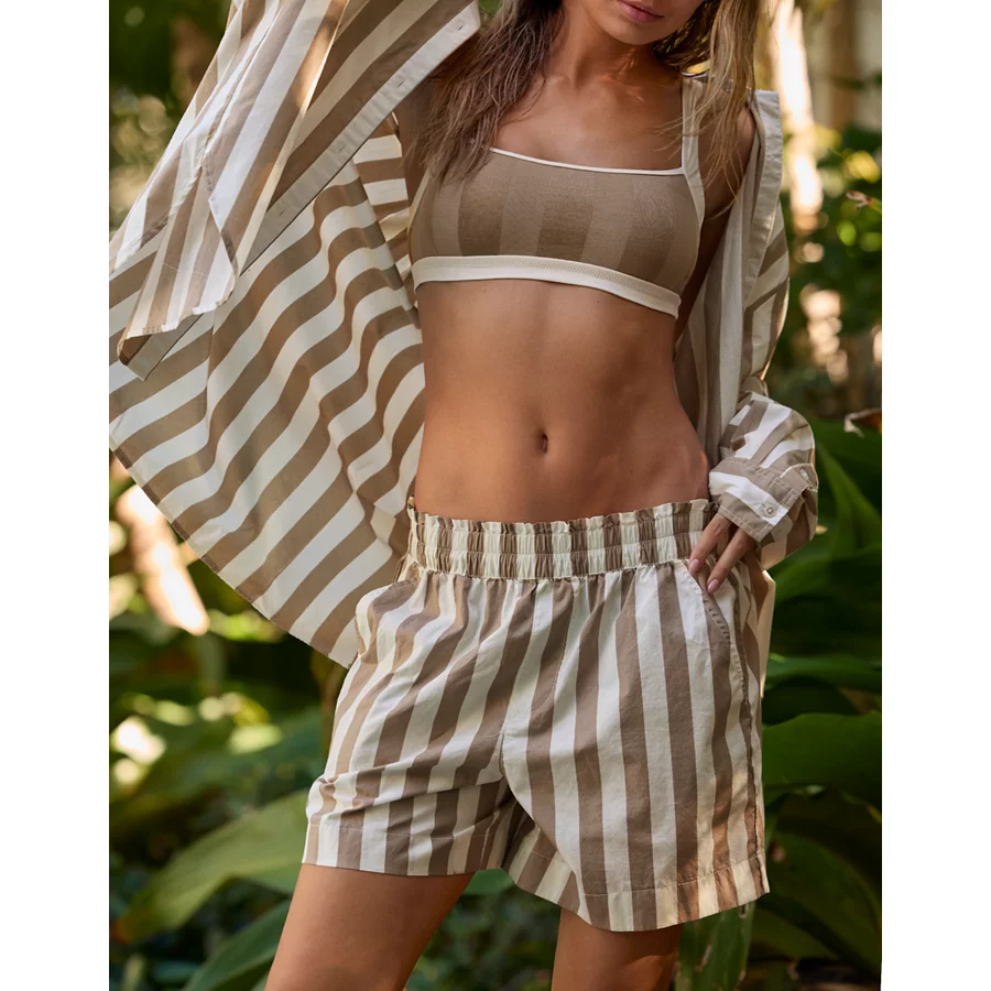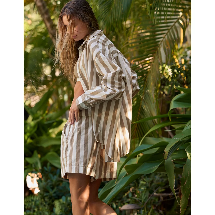 Lightweight, airy cotton poplin in stripesElastic paperbag waistFunctional button front with drawstringLined with boxer shorts 100% CottonMachine washImported Mini length