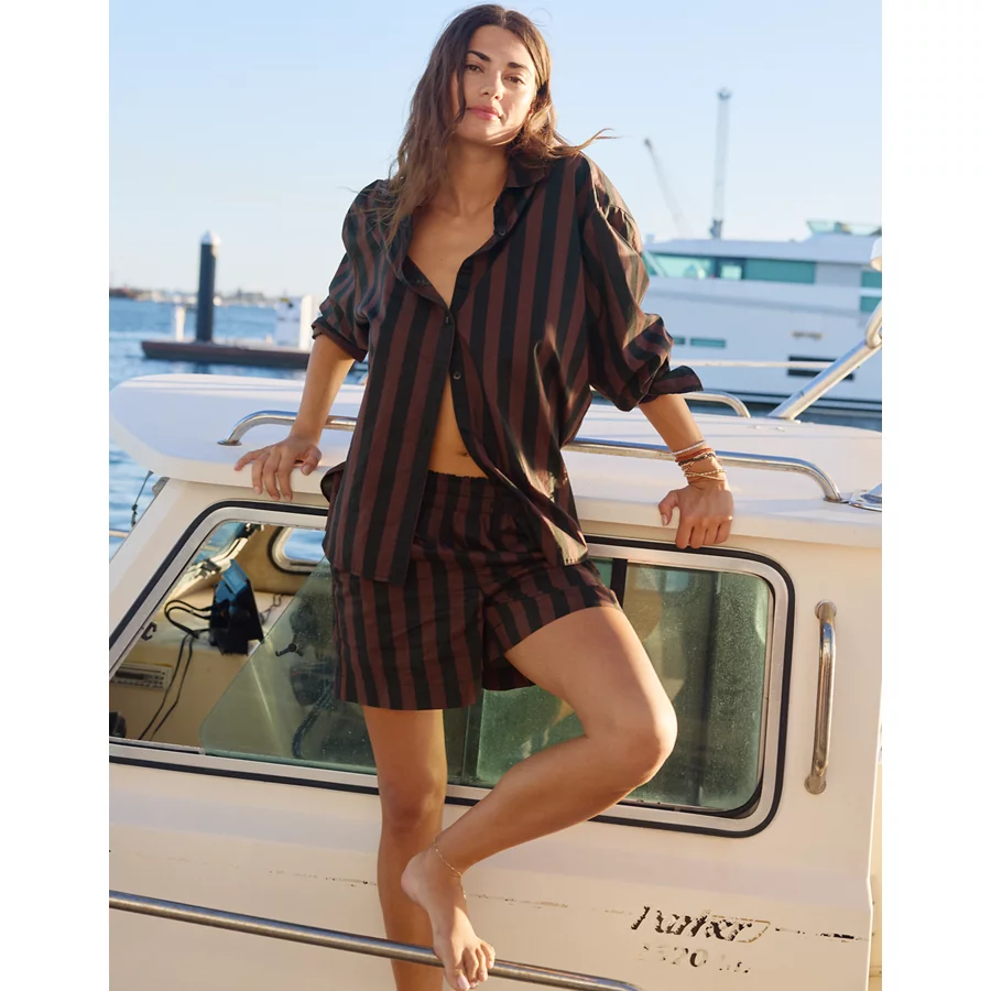 Lightweight, airy cotton poplin in stripesElastic paperbag waistFunctional button front with drawstringLined with boxer shorts 100% CottonMachine washImported Mini length