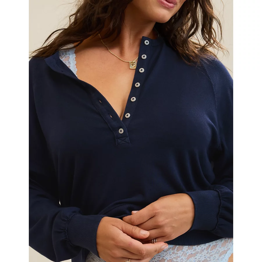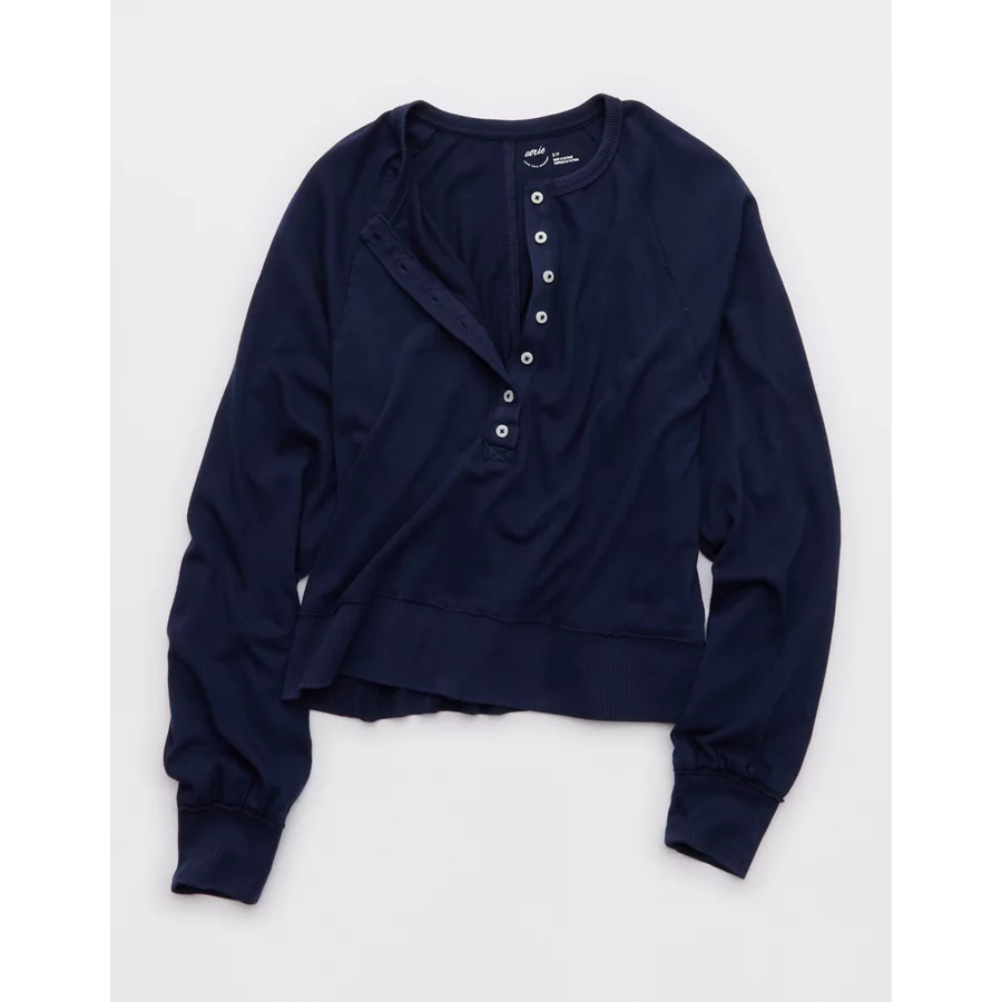 Aerie Happy Snit Henley T-Shirt - Medium Heather Gray