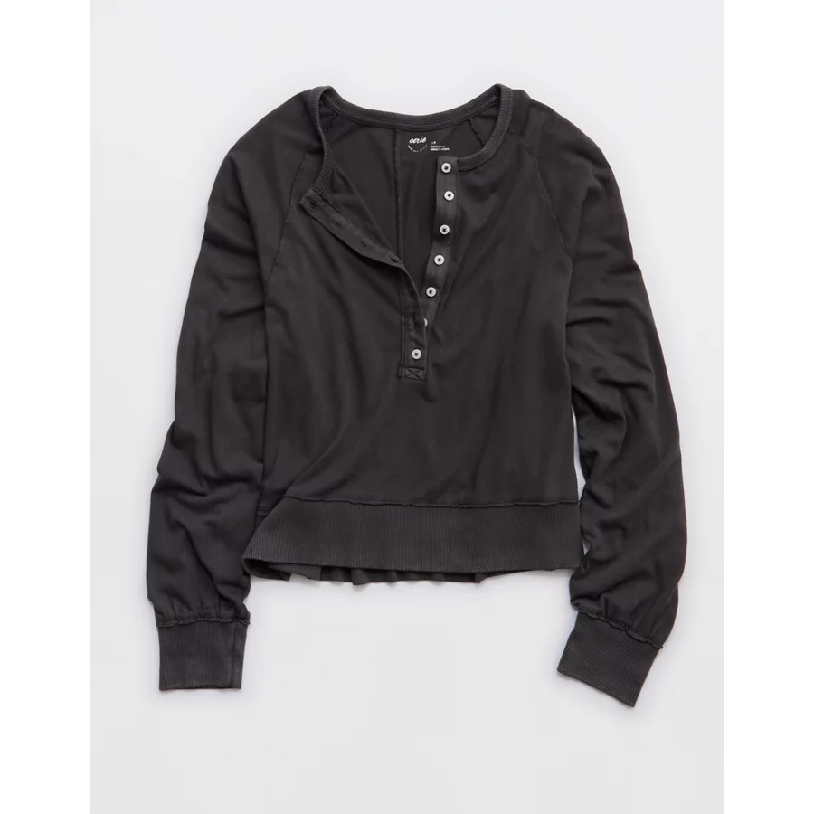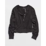 Aerie Happy Snit Henley T-Shirt – Smoked Gray