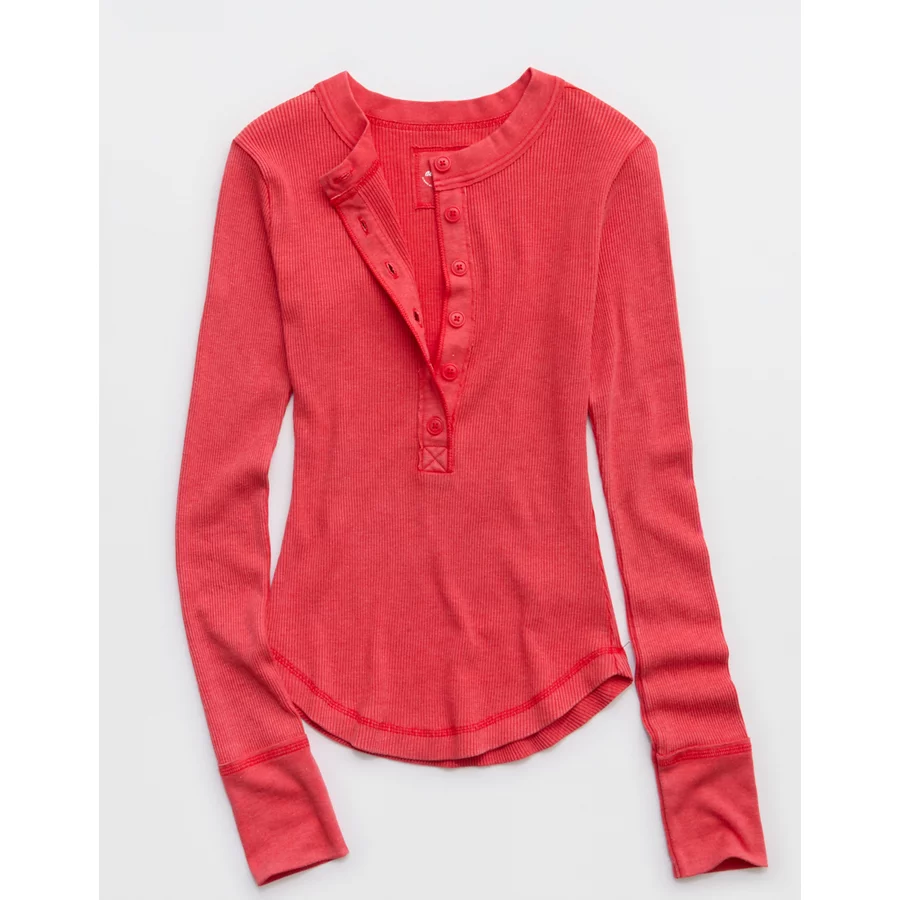 Aerie Henley Essential Layering T-Shirt – Bright Red