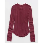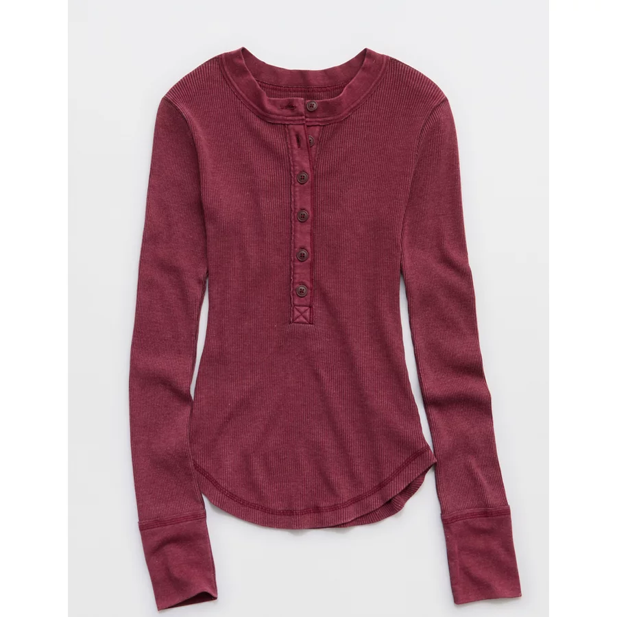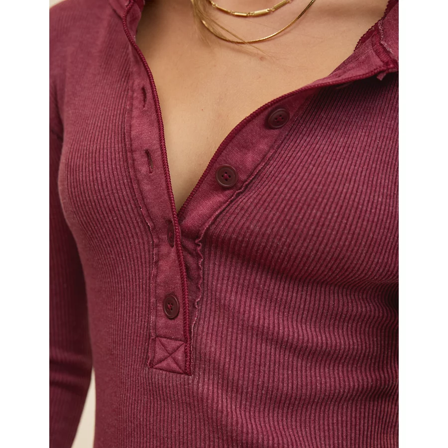 Aerie Henley Essential Layering T-Shirt – Deep Cherry