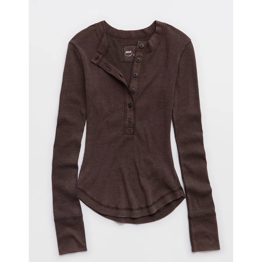Aerie Henley Essential Layering T-Shirt – Deep Earth