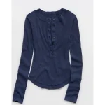Aerie Henley Essential Layering T-Shirt – Navy
