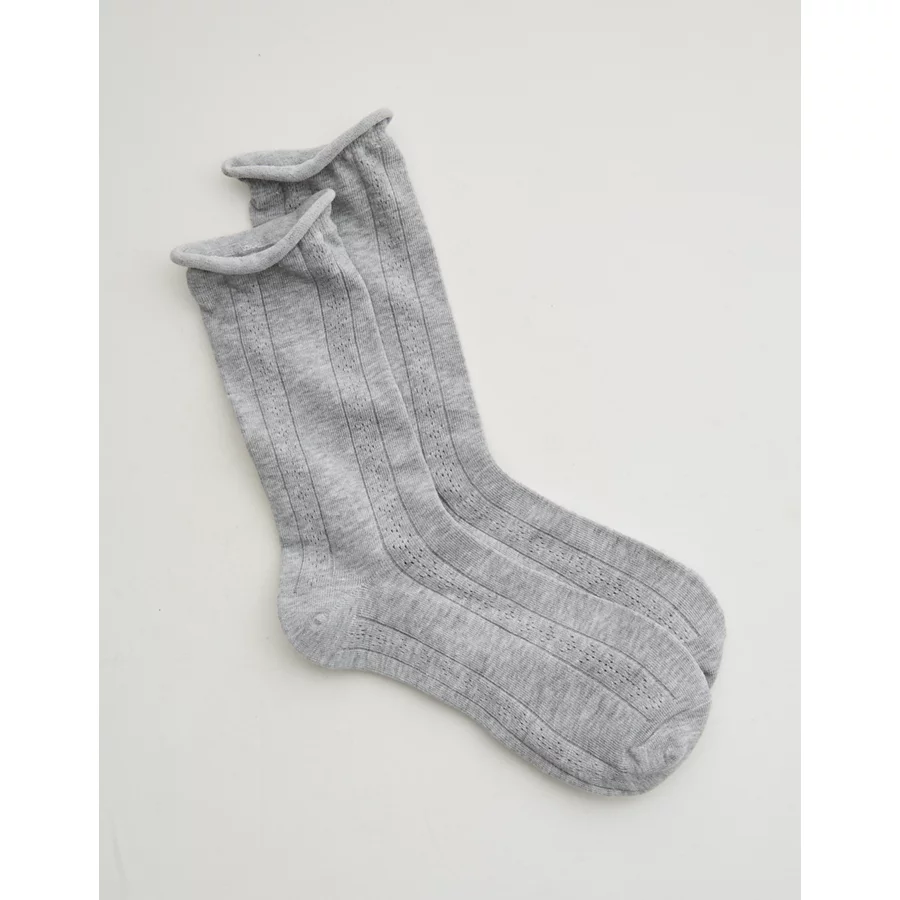 Aerie Knit Pointelle Crew Socks – Medium Heather Gray