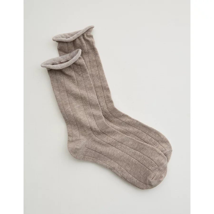 Aerie Knit Pointelle Crew Socks – Taupe