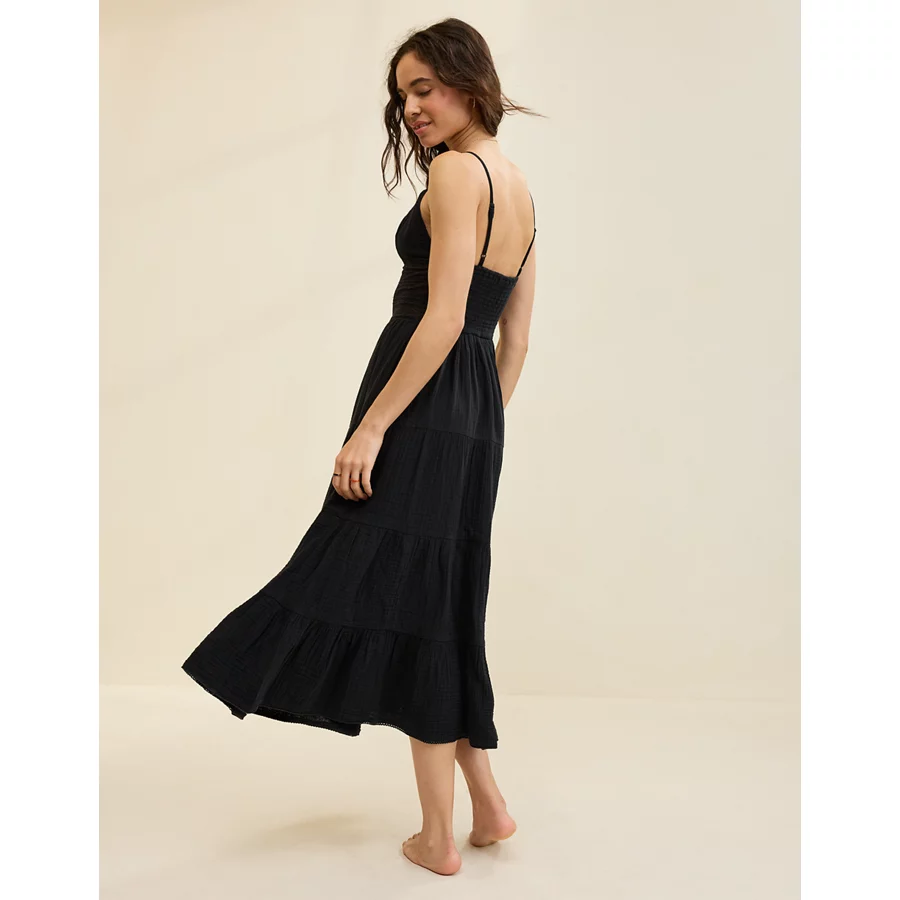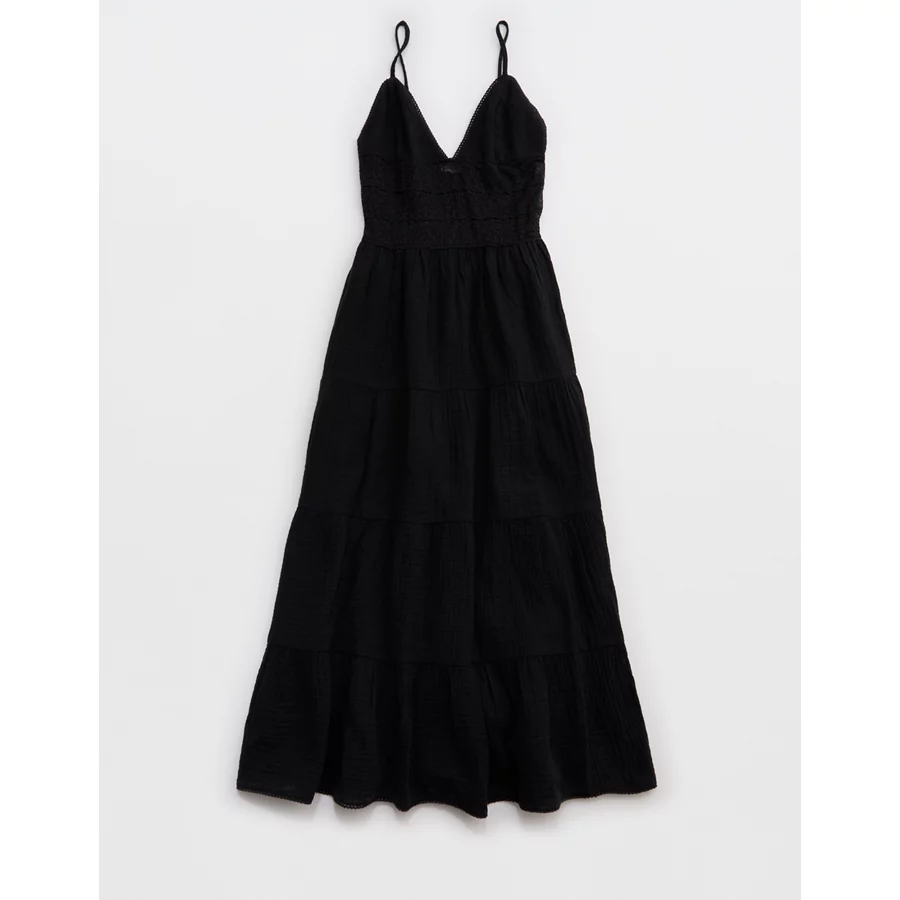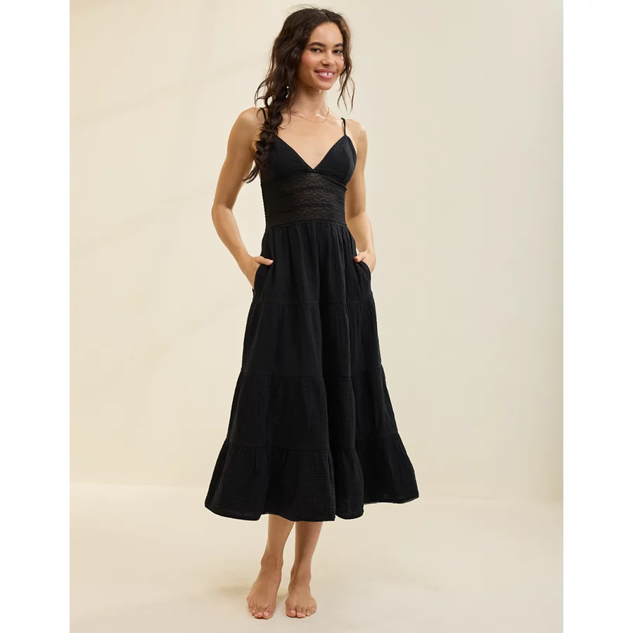 Aerie Lace Mix Midaxi Dress – True Black