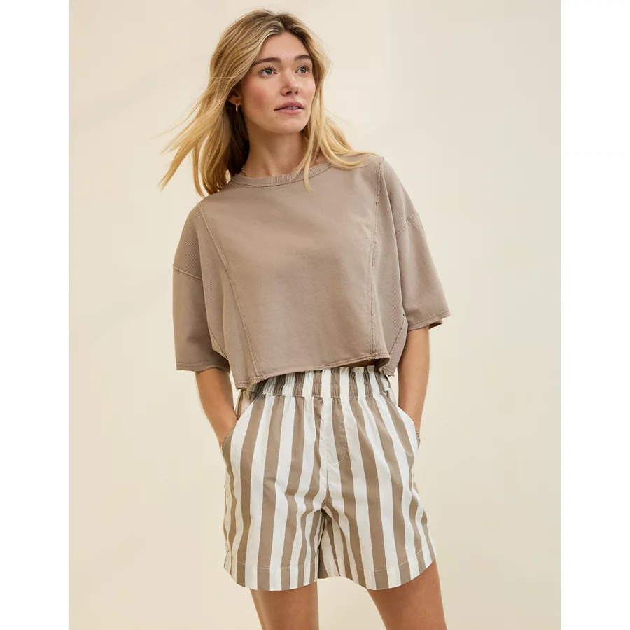 Lightweight, airy cotton poplin in stripesElastic paperbag waistFunctional button front with drawstringLined with boxer shorts 100% CottonMachine washImported Mini length