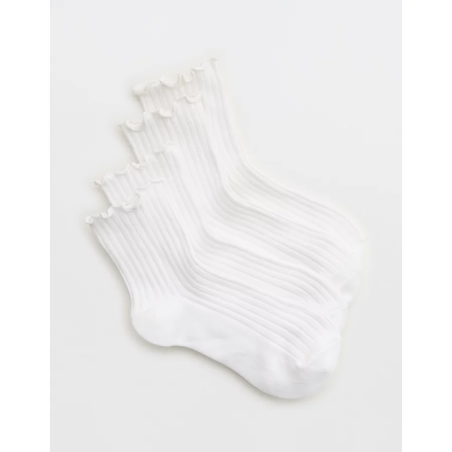 Aerie Lettuce Edge Bobby Sock 2-Pack – Bright White