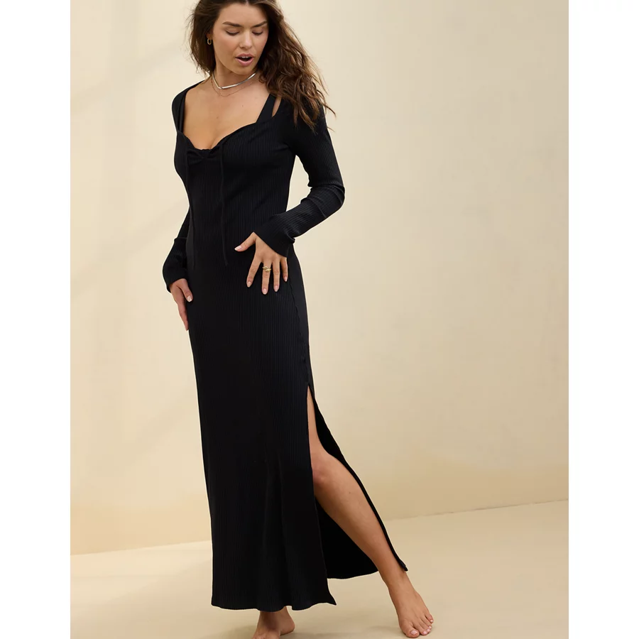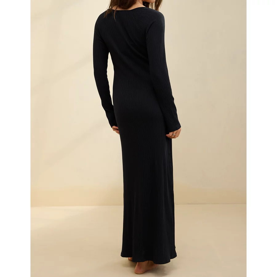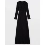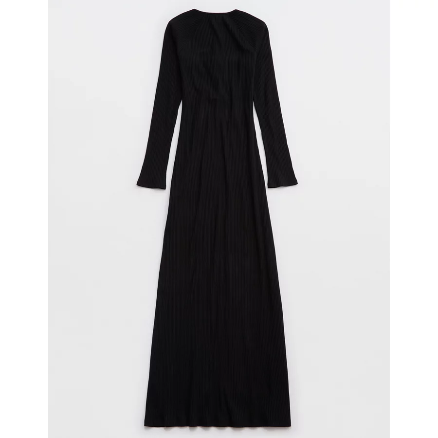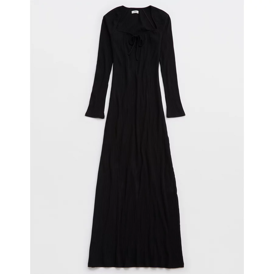Aerie Long Sleeve Knit Tie Front Maxi Dress – True Black
