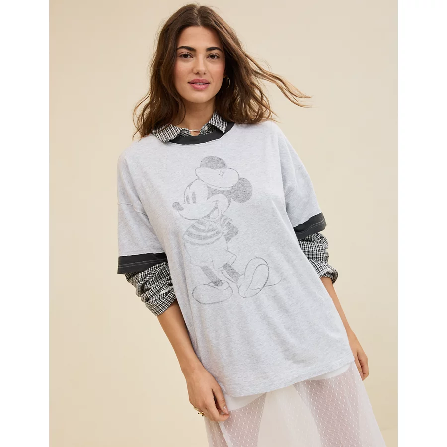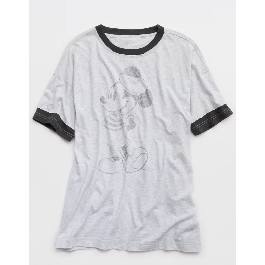 Aerie Mickey Mouse Crew Oversized Boyfriend T-Shirt – Light Heather Gray