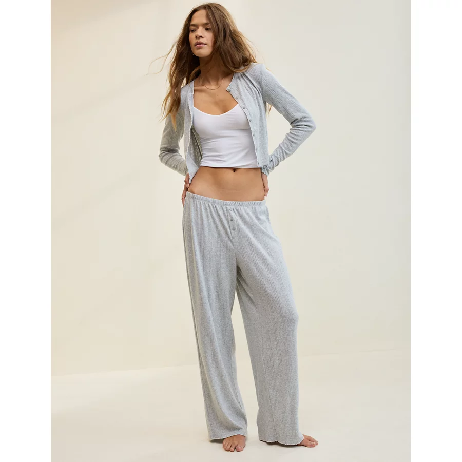 Aerie Off-Duty Pointelle Trouser PJ – Medium Heather Gray
