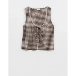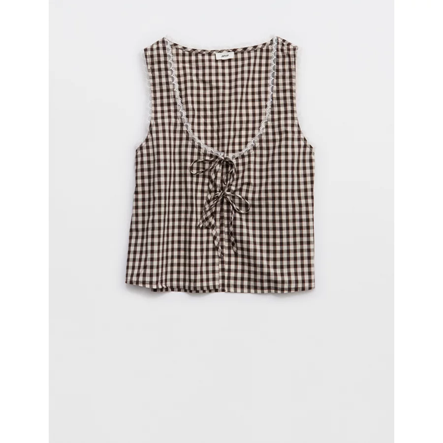 Aerie Off-Duty Poplin Tie Front Tank Top – Deep Earth