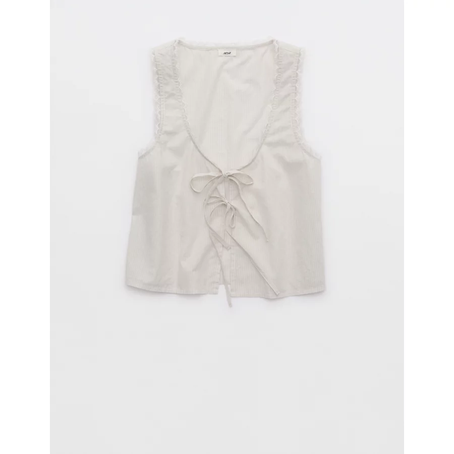 Aerie Off-Duty Poplin Tie Front Tank Top – Soft Muslin