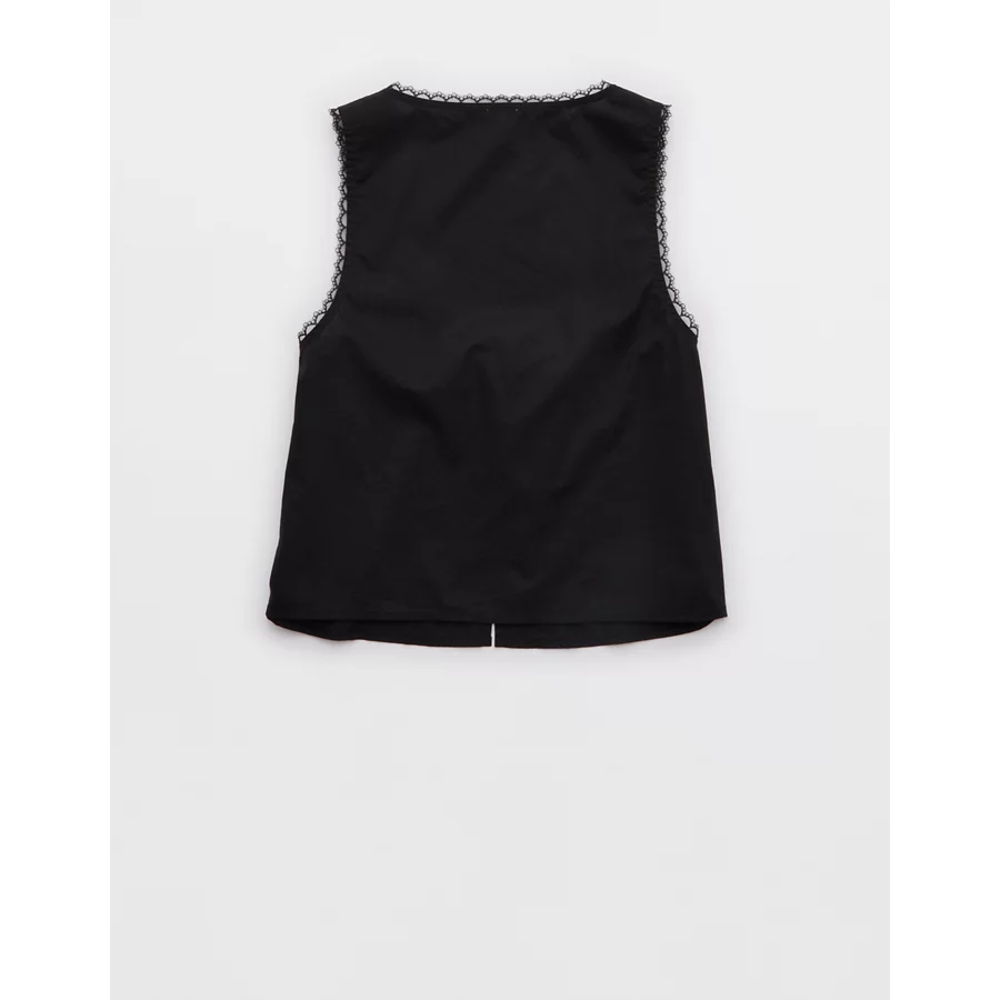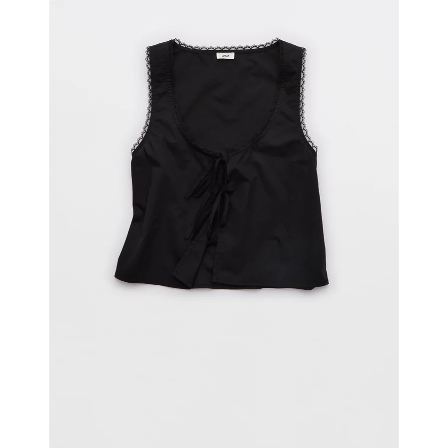 Aerie Off-Duty Poplin Tie Front Tank Top – True Black