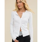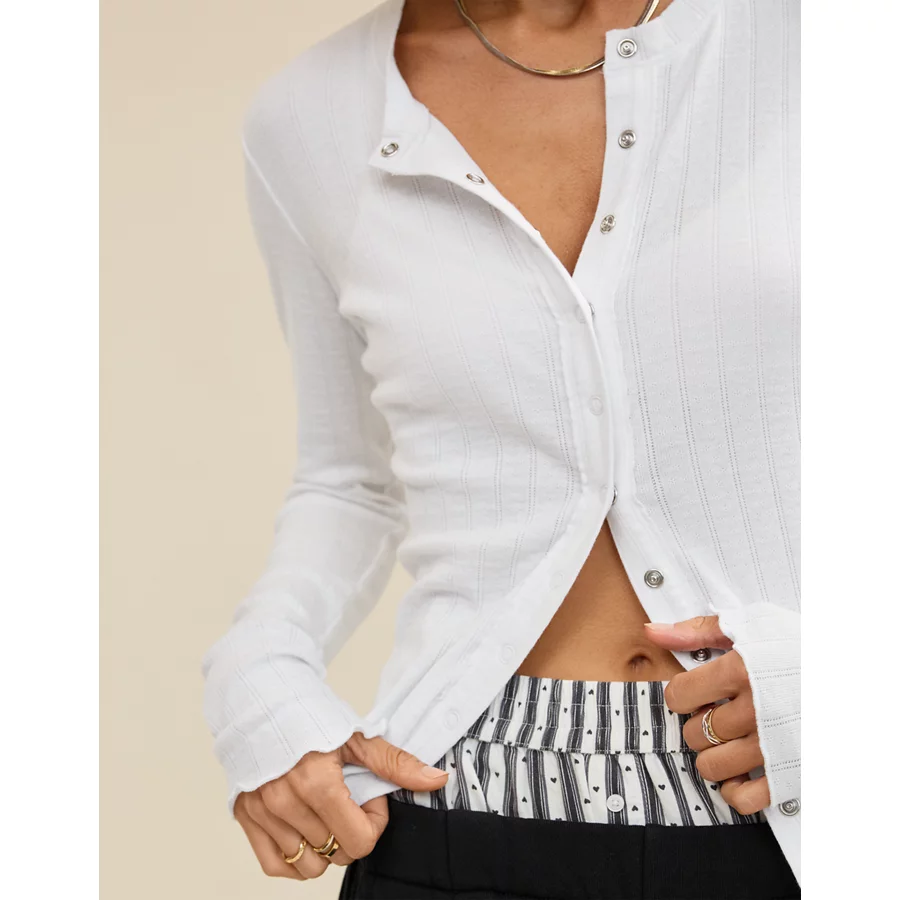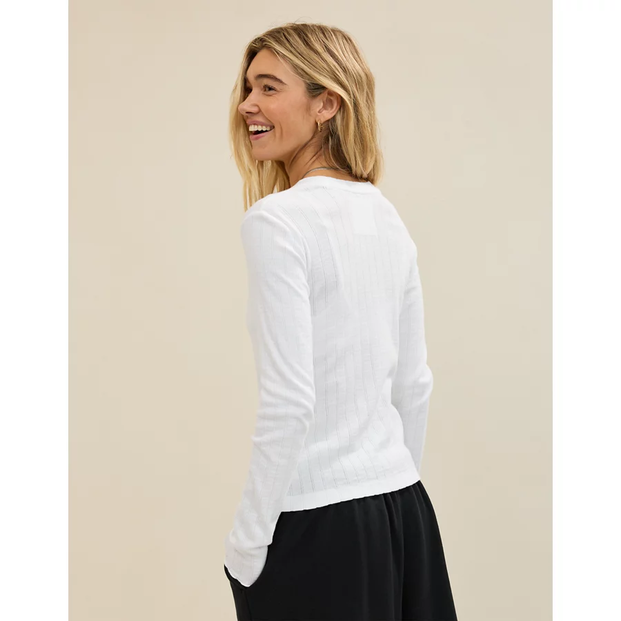 Aerie Pointelle Cardi T-Shirt – White