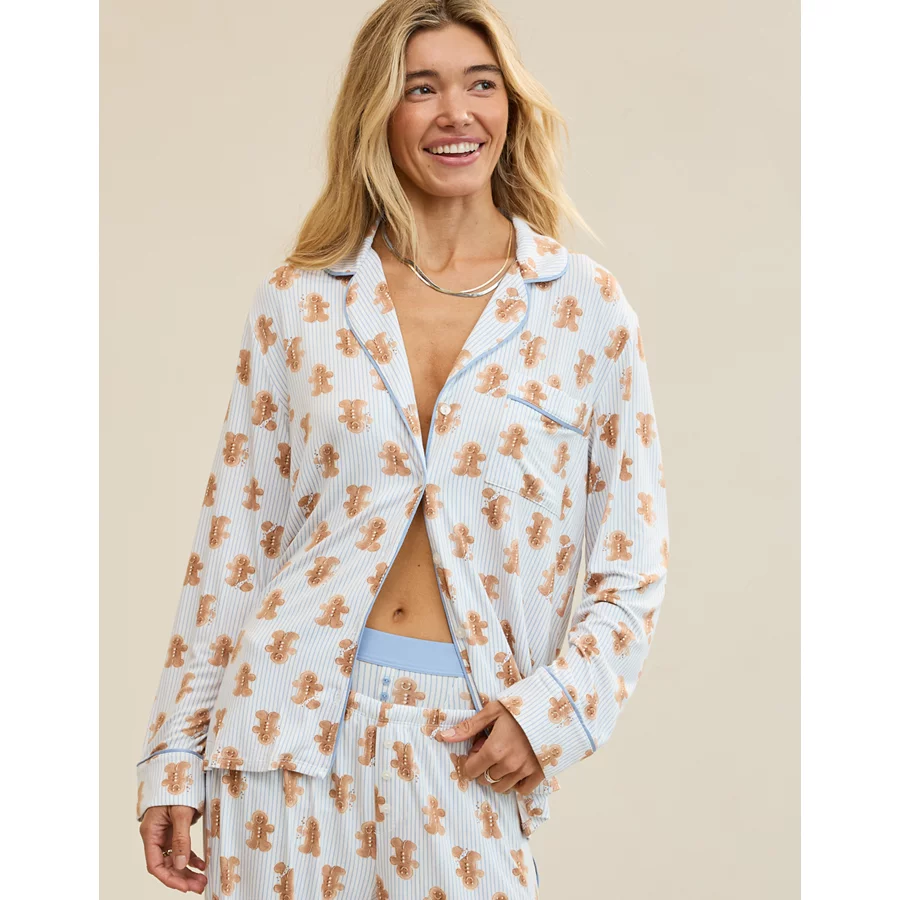 Aerie Bambi Real Soft® Piping Pajama Shirt – Smoked Gray