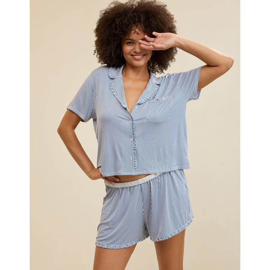 AE x Aerie Match Made In Denim Real Soft® Short Sleeve Shirt – Monaco Blue