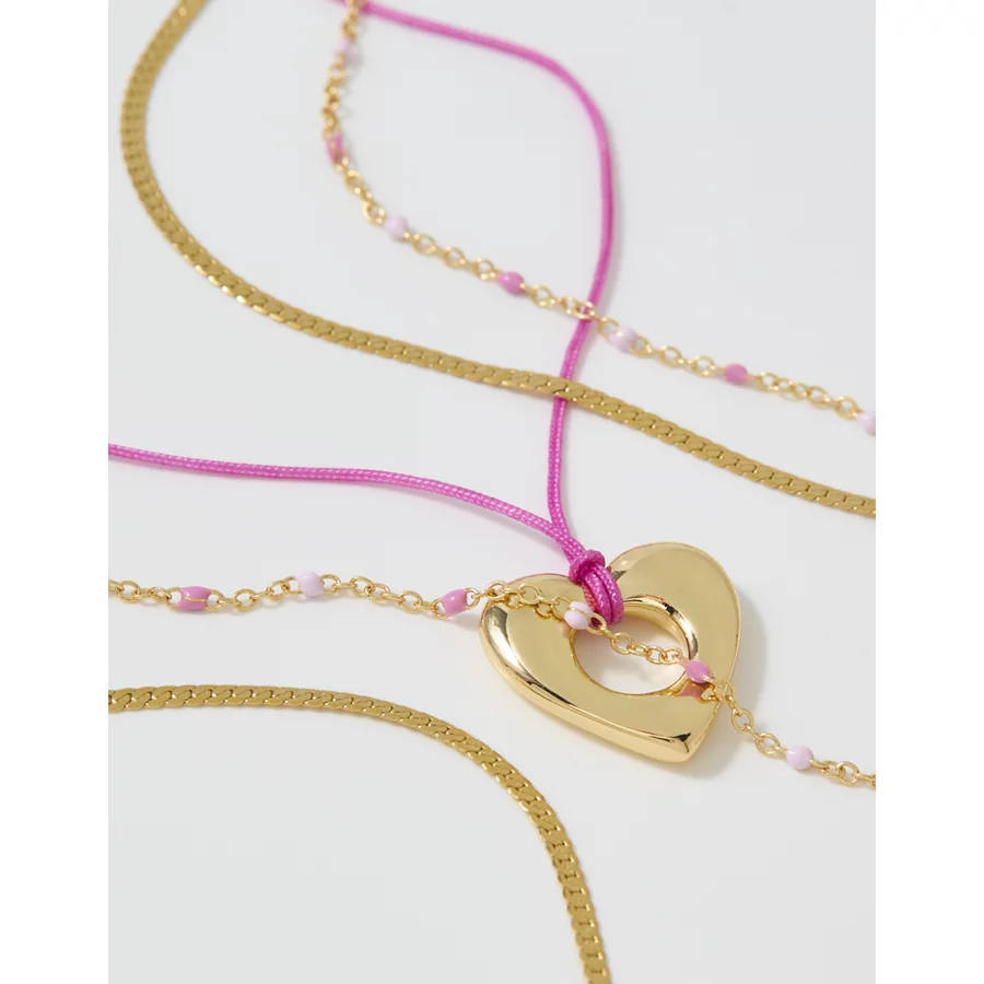 Aerie Roped Heart Necklace 3-Pack – Gold