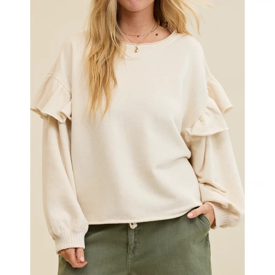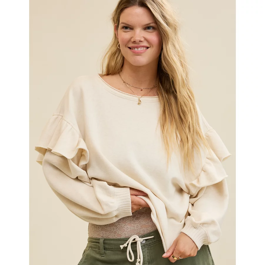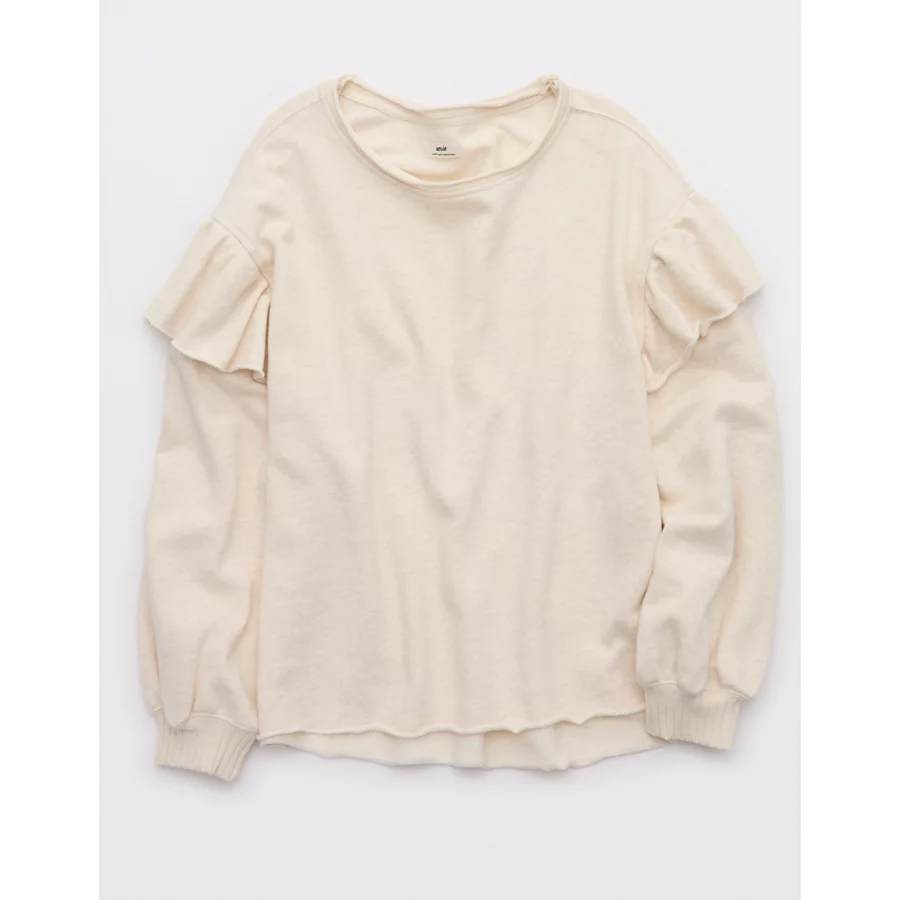 Aerie Ruffle Sleeve Sweatshirt – Heather Frost