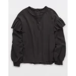 Aerie Ruffle Sleeve Sweatshirt – Smoked Gray