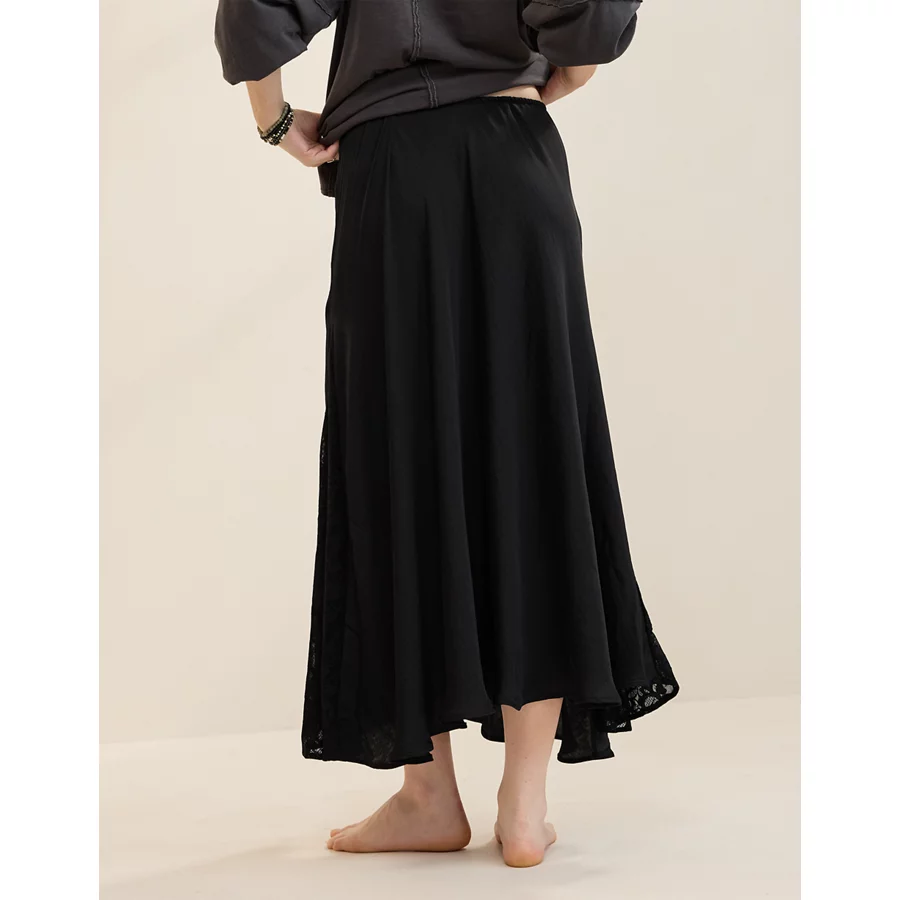 Aerie Satin Maxi Skirt - Eyelet Blue