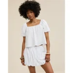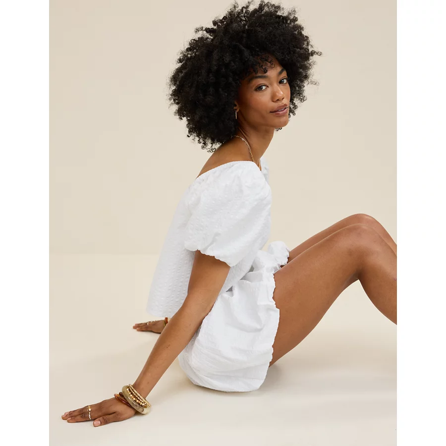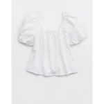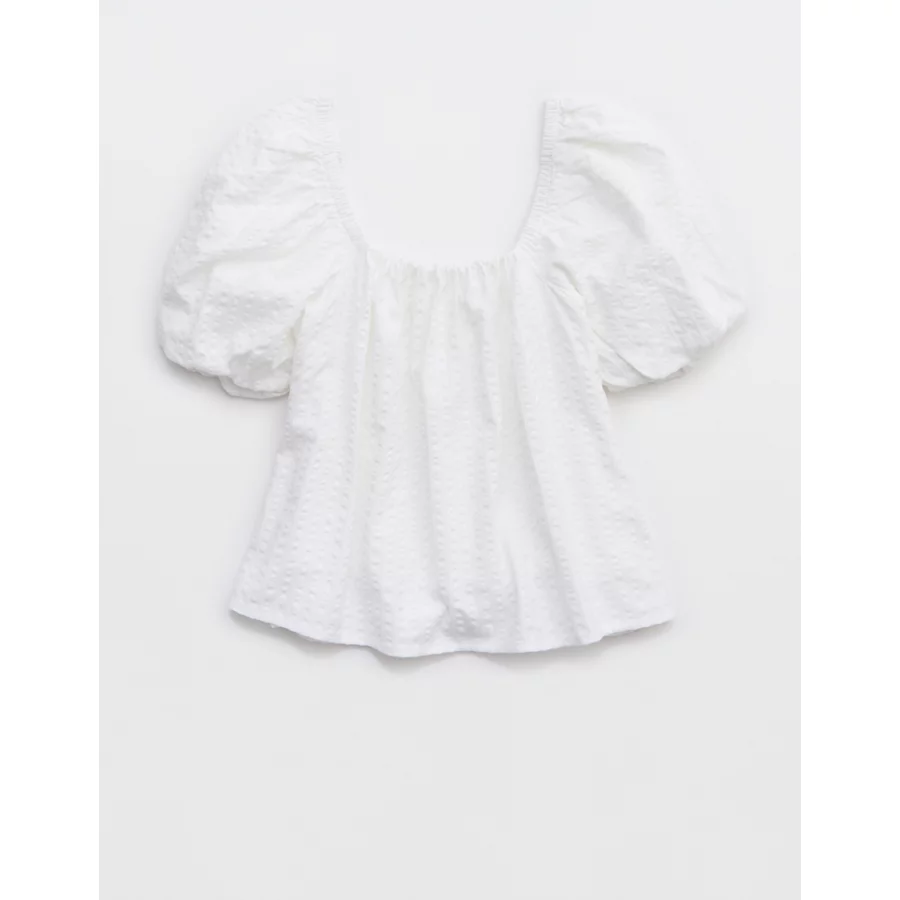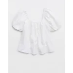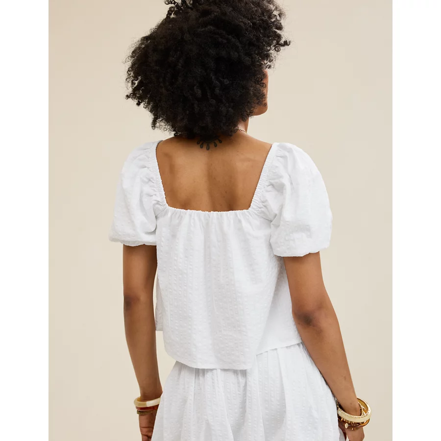 Aerie Seersucker Puff Sleeve Top – White