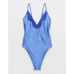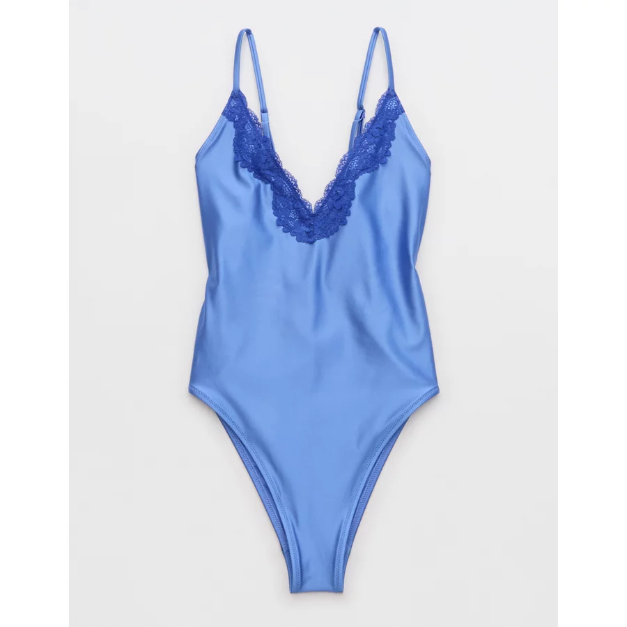 Aerie Shine Lace Plunge One Piece Swimsuit – Laundry Blue
